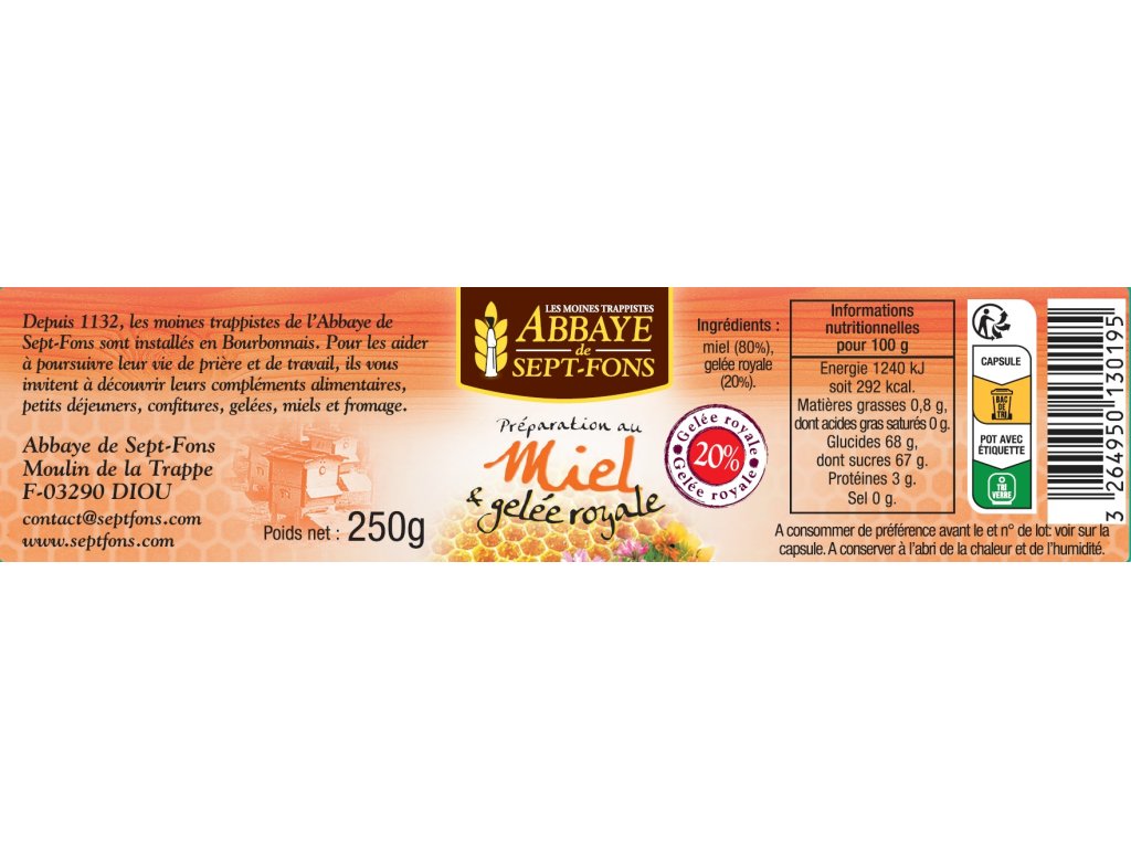 Zloženie: med (80 %), materská kašička (20 % alebo 50 g).